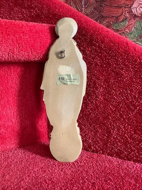 Mooi en gaaf muurbeeld van Jezus met het Heilig Hart, handgemaakt in Duitsland. Het werk straalt eenvoud en devotie uit en verkeert in mooie staat. Materiaal vermoedelijk gips of keramiek.