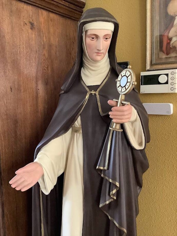 St. Clara was een volgelinge van St. Franciscus van Assisi en stichteres van de Clarissen. Haar feestdag wordt gevierd op 11 augustus. Zij wordt ook wel de redster van Assisi genoemd, nadat zij in gebed een dreigende inval wist te keren.