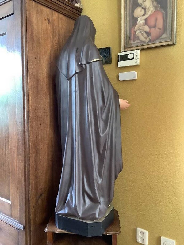 Met een hoogte van maar liefst 1,25 meter is dit een indrukwekkend kerkbeeld dat ooit in een religieuze setting stond en nu een echte blikvanger vormt in huis of verzameling.