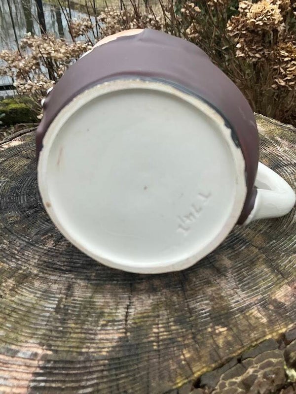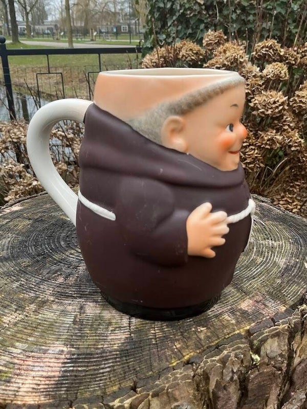 Een hele vrolijke bierpul in de vorm van een monnik, uitgevoerd in puntgaaf porselein. Deze pul is gesigneerd en gemerkt Goebel met nummer T.74/1 en dateert uit de jaren ’50. Een echte eyecatcher en een prachtige aanvulling voor iedere verzameling.