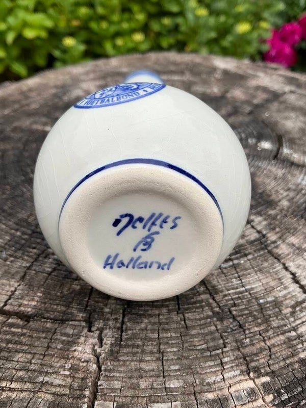 Een bijzonder en verzamelwaardig stuk voor zowel liefhebbers van Delfts blauw als voor verzamelaars van voetbalmemorabilia.