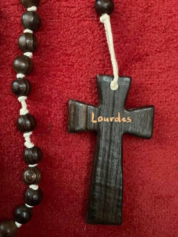 Grote houten rozenkrans Pater Noster – Lourdes jaren ’80 – 82 cm