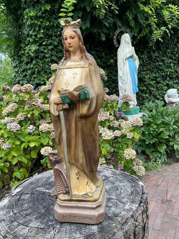 Antiek Heiligenbeeld – Heilige Dimphna van Geel (Jaren ’30)
