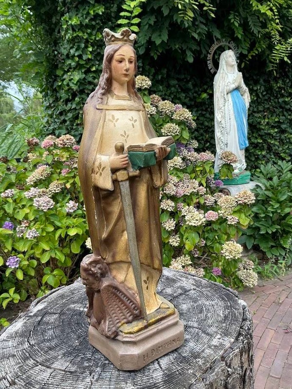 De Heilige Dimphna was een vroegchristelijke martelares en staat bekend als de patroonheilige van geestelijke gezondheid en emotioneel welzijn. Dit beeld is daardoor niet alleen een waardevol verzamelobject, maar ook een inspirerend symbool van kracht en geloof.