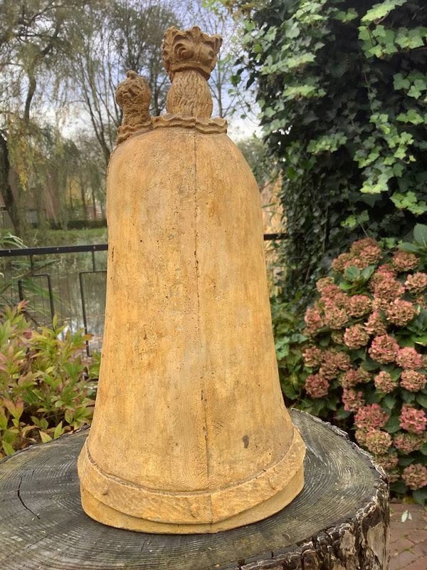 Met zijn serene uitstraling en zachte vormen straalt dit beeld rust, devotie en tijdloze schoonheid uit. De warme patina en subtiele verouderingssporen geven het Mariabeeld extra karakter, waardoor het zowel spiritueel als decoratief van grote waarde is.