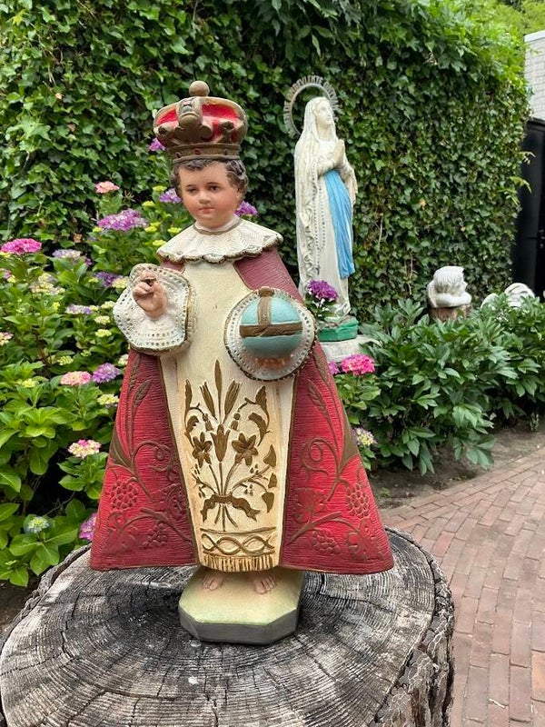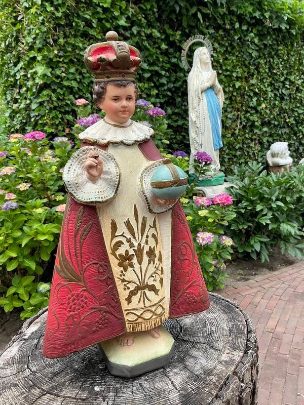 Antiek Heiligenbeeld – Kindje Jezus van Praag (Gips, Jaren ’30/’40)