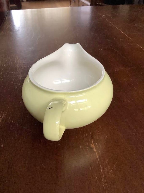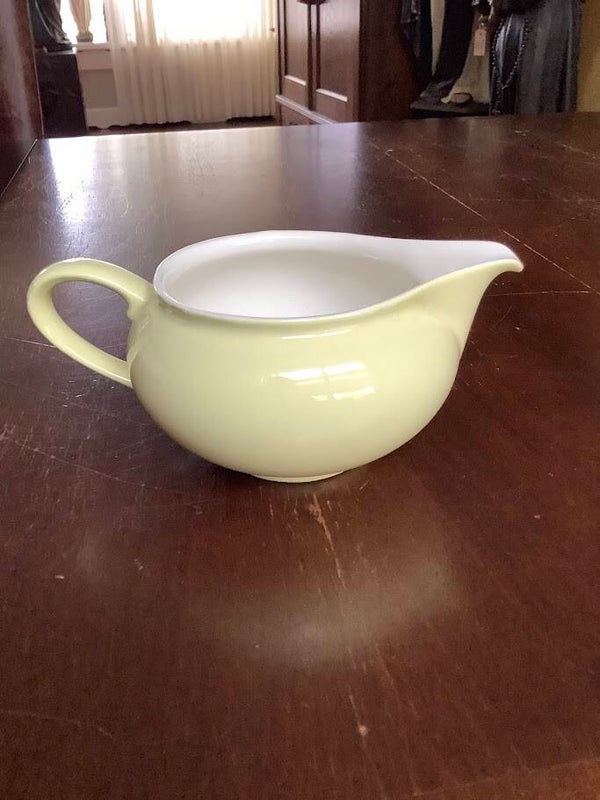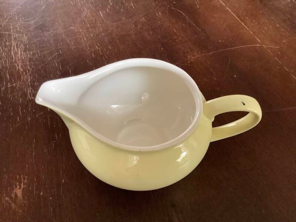 Dankzij het subtiele ontwerp en de frisse kleur is dit kannetje zowel praktisch als decoratief. Perfect als aanvulling op een vintage servies, of als charmant accent op een gedekte tafel.