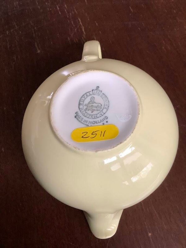 Dit mooie room- of melkkannetje van Royal Sphinx Maastricht is een elegant stukje Nederlands serviesgeschiedenis. Het kannetje is uitgevoerd in een zachte pastelgele tint en verkeert in zo goed als nieuwe (ZGAN), puntgave staat – zonder beschadigingen of verkleuringen.