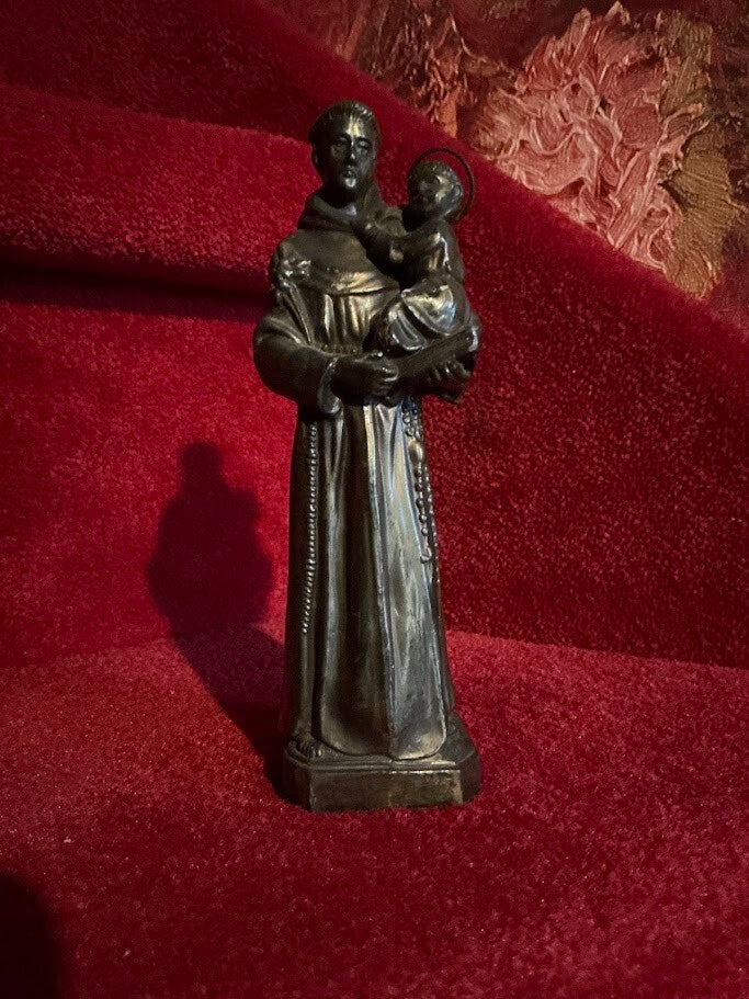 Prachtig antiek bronzen heiligenbeeld – St. Antonius van Padua (jaren ’30)