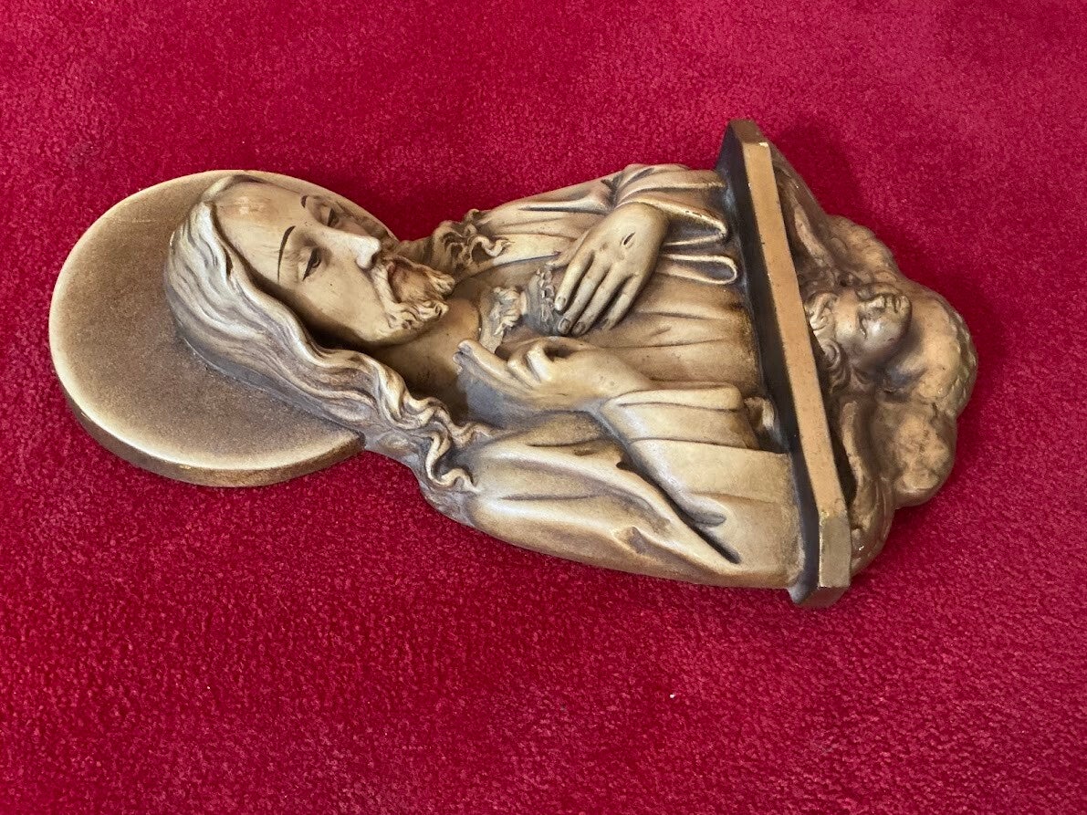 Zeldzaam groot antiek Frans muurbeeld – Jezus met engel (jaren ’20–’30)