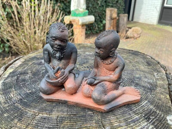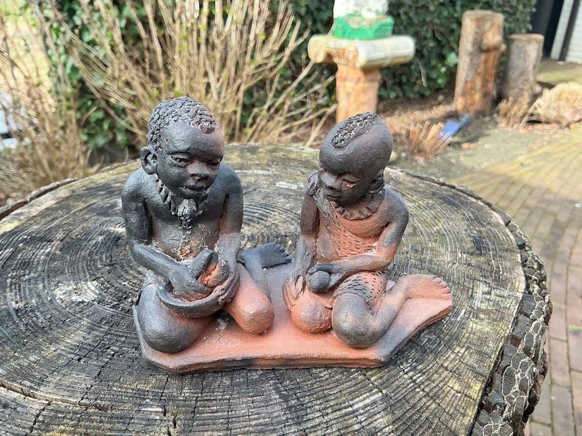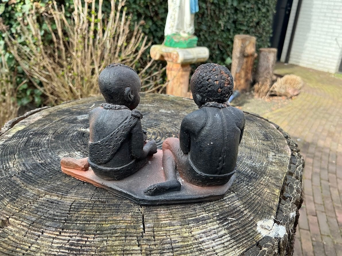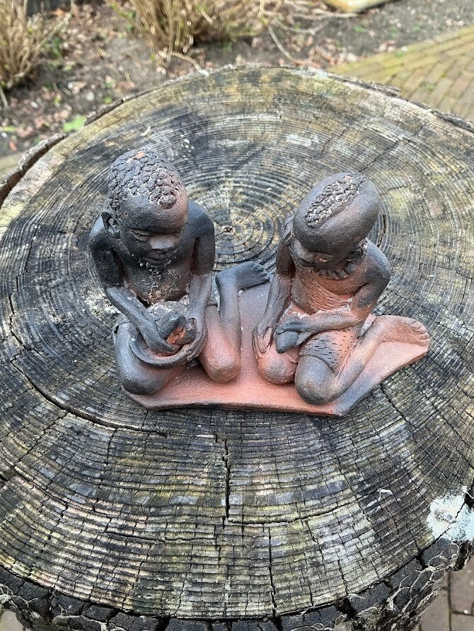 Oud Afrikaans beeldje – twee zittende kinderen (ca. jaren ’40)