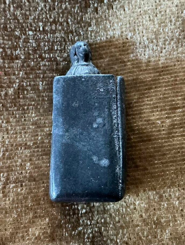 Een prachtig en zeldzaam object voor liefhebbers van religieuze antiquiteiten, pelgrimssouvenirs en kleine devotionalia.